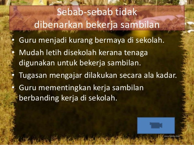 Profesion guru mencapai cabaran yang besar dalam membangunkan generasi bangsa malaysia yang maju menjelang tahun 2020. Meluaskan konsep pembelajaran tanpa sempadan. Guru terpaksa mengendalikan aktiviti kokurikulum, bilik darjah, hal ehwal murid, pentadbiran dan perkeranian serta beberapa kerja tambahan lain menyebabkan guru semakin tertekan dengan beban kerja yang terlalu banyak. Guru ikuti pengajian semasa cuti sekolah. Bmm2/elm/psv bm ambilan jun 2011.