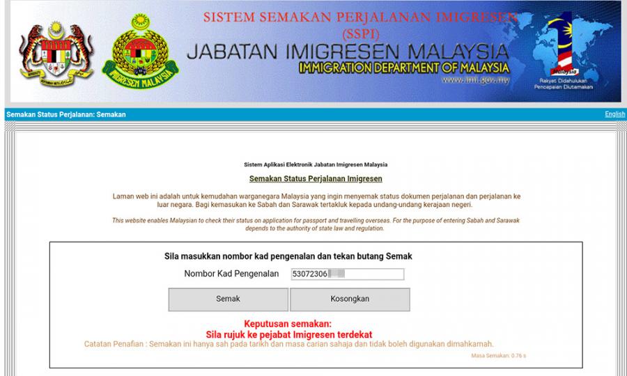Related : Semakan Sekatan Luar Negara : .ke luar negara, semakan status dokumen perjalanan ke luar negara melalui aplikasi sistem online jabatan negara ini, status semakan akan terpapar sebagai tiada halangan (tiada sekatan)..