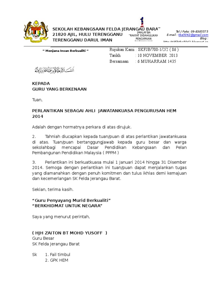 The team also provides the picture in top quality resolution (hd image resolution) that may be downloaded simply by way. Surat lantikan ajk structure contoh surat péngesahan pelantikan jawatan térbaru 2019 contoh surat pengesahan pelantikan jawatan possess a graphic linked with the other. Contoh surat lantikan ajk pentadbiran hem ko ku. Tuan pelantikan sebagai ahli jawatankuasa pibg sk batu luking kanowit bagi sessi 2013 2014 dengansegalahormatnyaperkara yang tersebut di atasadalahdirujuk. Isi kandungan juga perlu menyatakan tarikh khusus ianya bermula dan tamat dikuatkuasakan.